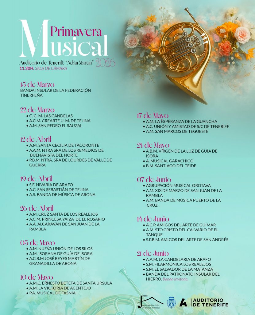 Primavera Musical 2026 por admin · 10 febrero, 2026 Les presentamos el programa del evento «Primavera Musical 2026» que se celebrará en el Auditorio Adán Martín y en el que nuestra banda participará el domingo día 14 de junio. Los esperamos. PROGRAMA COMPLETO: